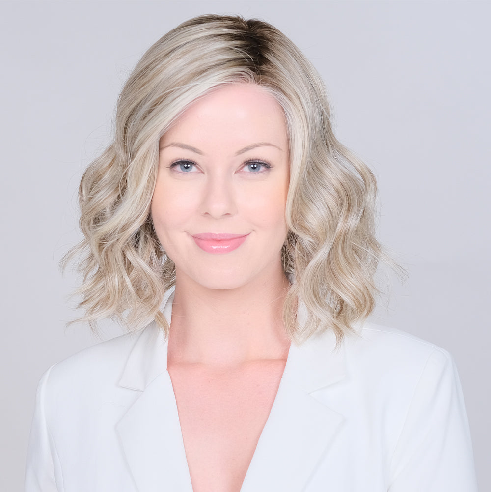 The proprietary knotting method is applied for a natural contour and off-the-face styling. Slightly extended lengths toward the front and shorter blunt cuts in the back create an edgy attitude.