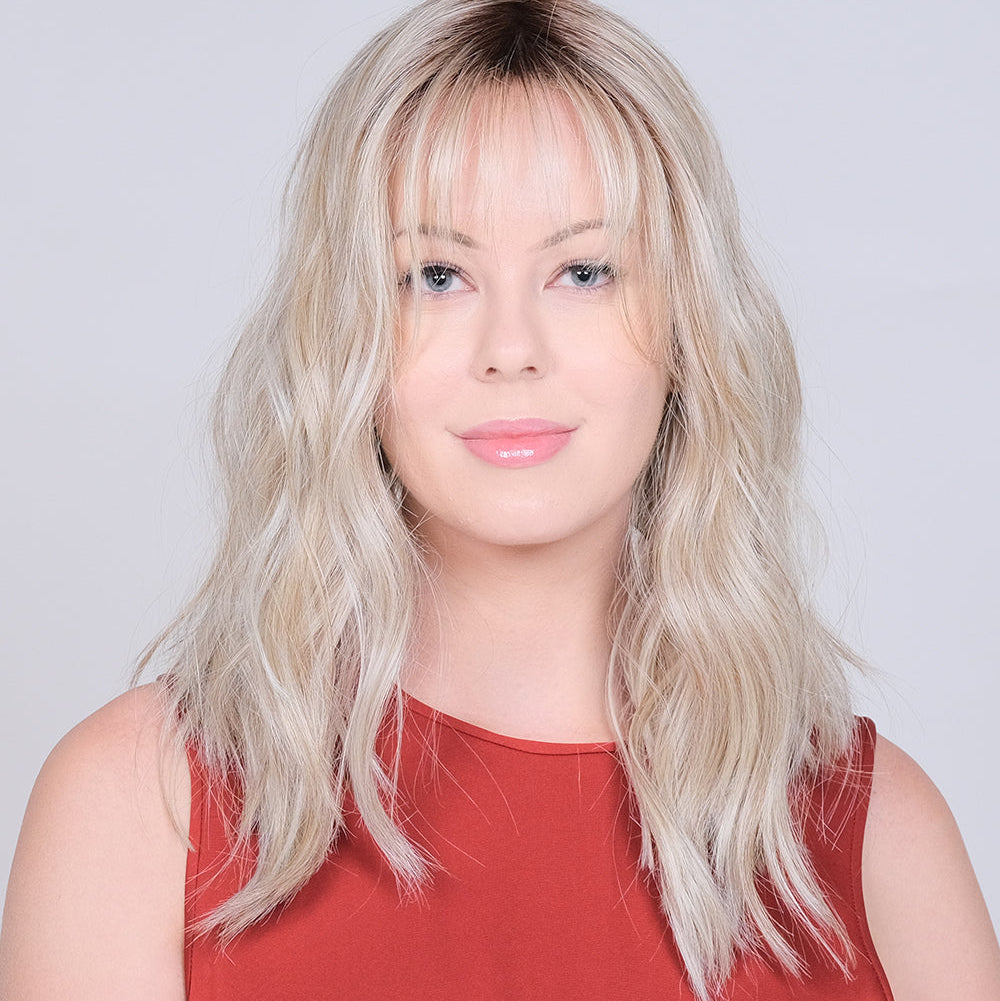 The demands for wispy, slightly longer, precut bangs are high! Wispy, Precut bang with the option of a half-moon lace front to wear the hair behind the ear. Bangs may have once been a rash decision born out of lockdown-era boredom, but they have since become a significant player in haircuts. These asymmetrical bangs make a striking visual impact, but they also create the illusion of a softer face. Notice the updated, lightly blunt, and deconstructed modern beach wave.