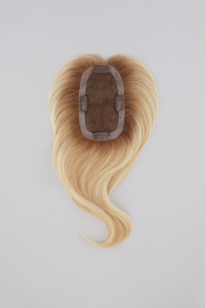 EasiPart Medium is ideal for those experiencing beginning to mid/progressive hair loss and looking for more coverage and volume. This human hair topper features more density, a wider base for more all-over coverage, and larger polyurethane perimeter allowing easier application of Tape ‘N Go or adhesive. Available in 12- and 18-inch lengths.