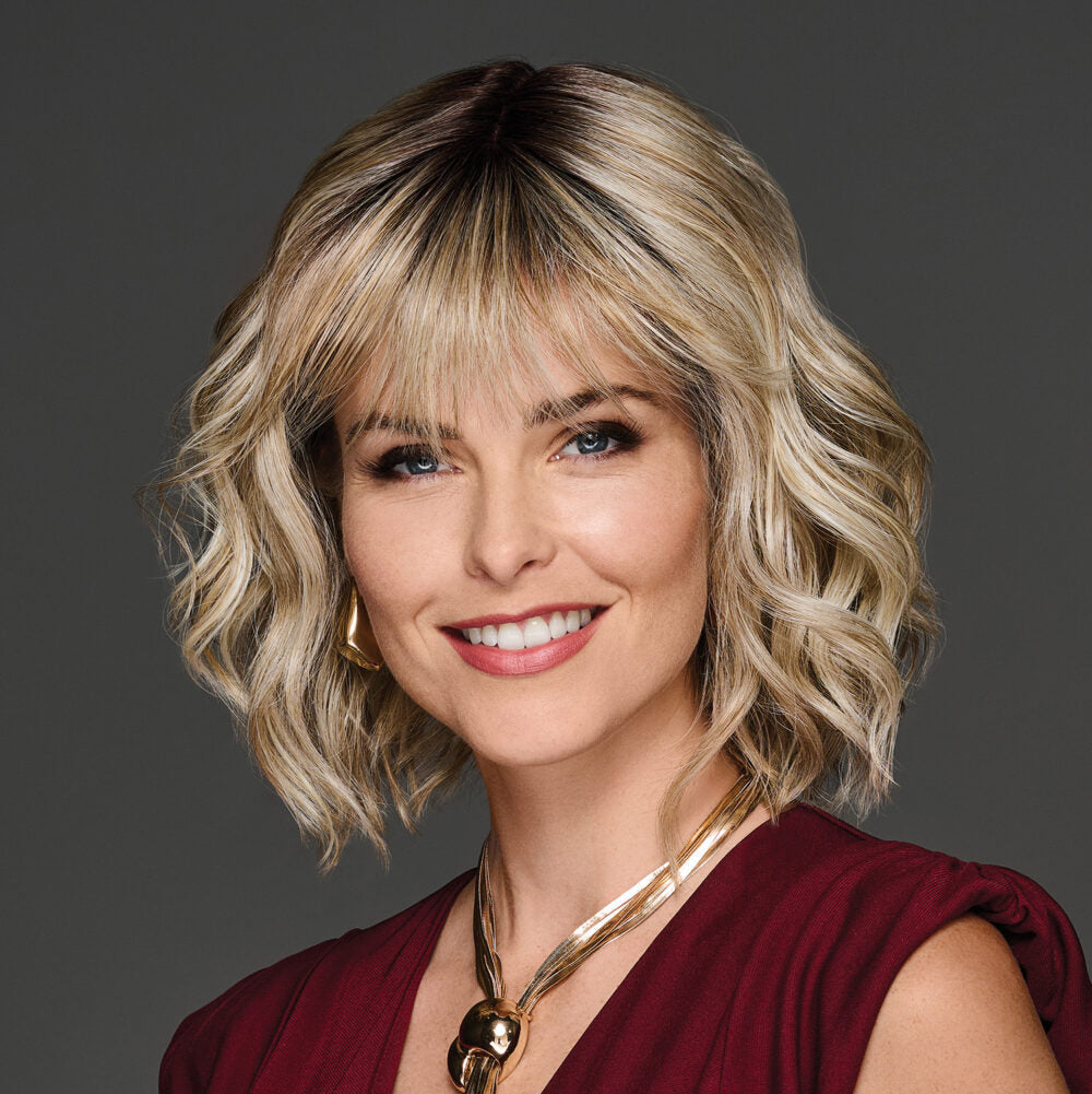 It’s the tousled waves and soft bangs look you’ve been waiting for! The temple-to-temple lace front lets you wear the wispy bangs piecey and broken up. A center monofilament and mid-length loose beachy waves make this style right on trend.