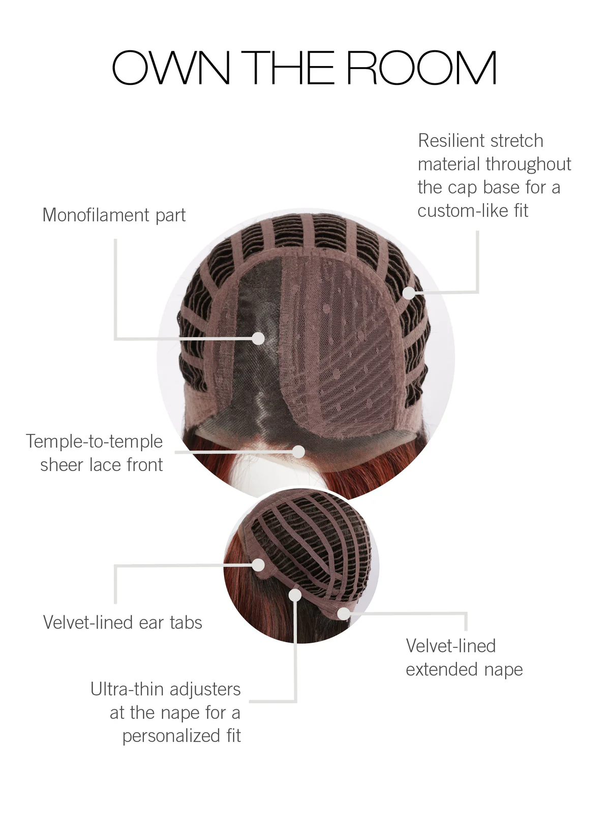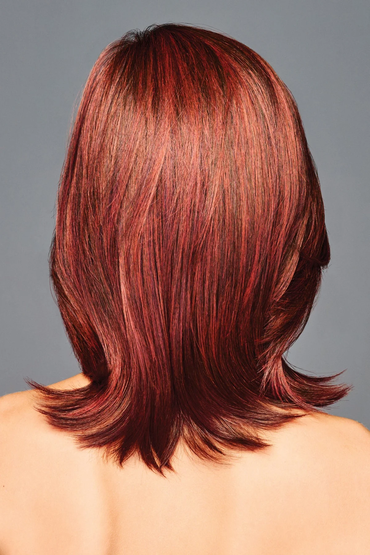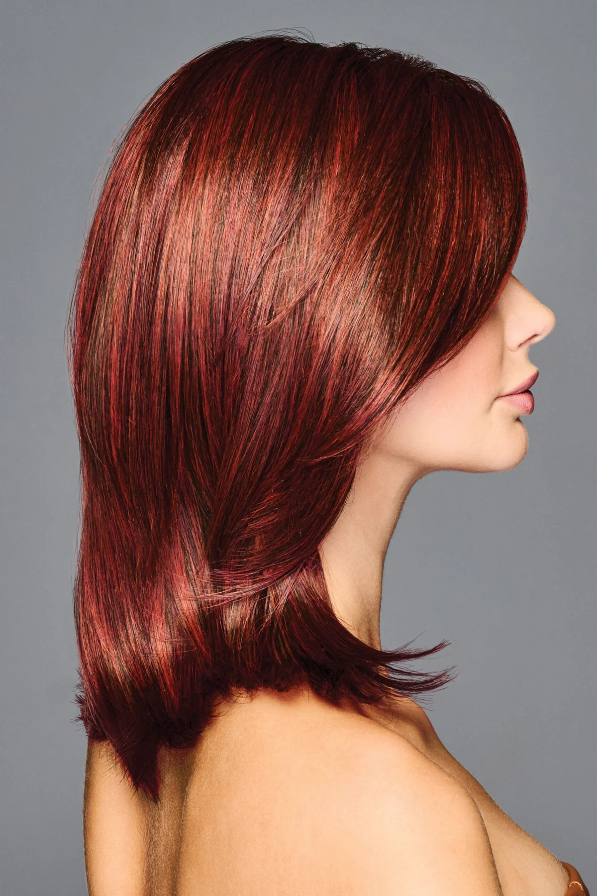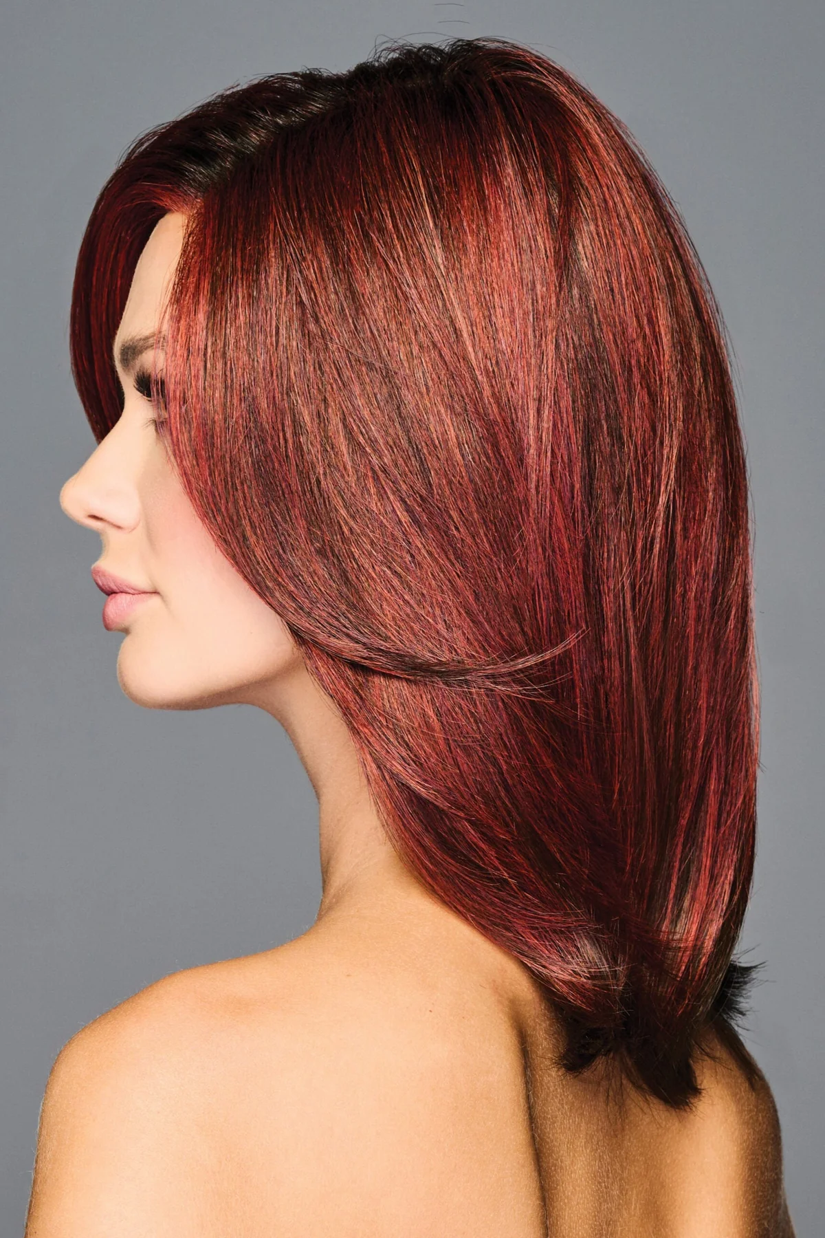 Long sleek layers in a mid-length cut create the look of length. Ageless and effortless. Easier to maintain and flattering for women of all ages. An extended lace front lets you wear half up or brushed away from the face with a beautifully natural-looking hairline. You will easily OWN THE ROOM in this youthful, seductive style.