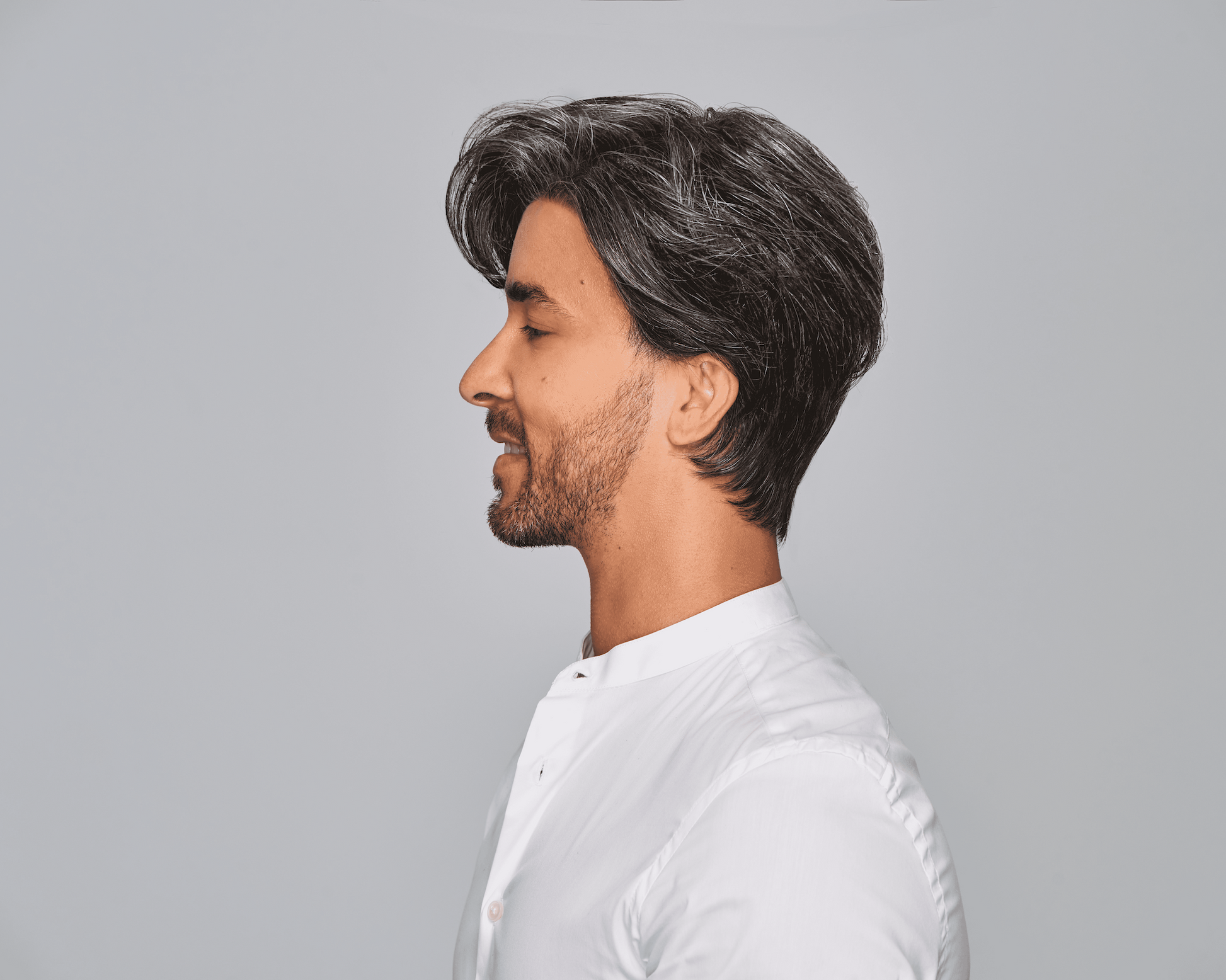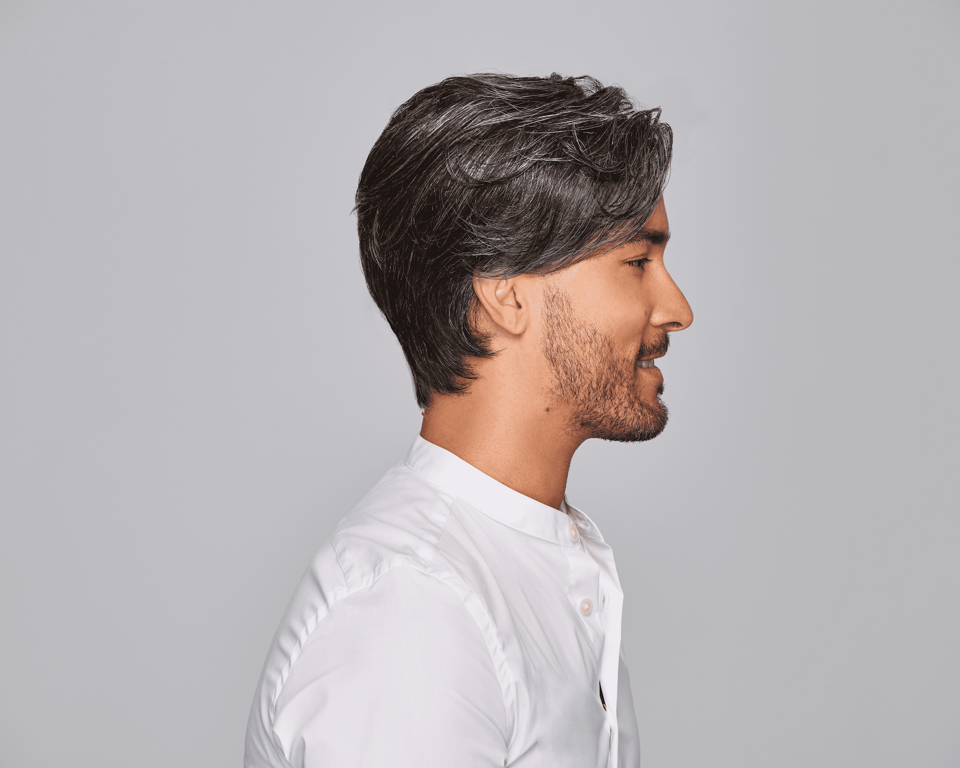 The touchable light wave texture throughout this dashing, low-density style has all the best moves thanks to a completely hand-tied construction. Customization options let HIM make a bold fashion statement or keep his look quietly classic. The lace front hairline is specially designed to look remarkably realistic and clinch that important first impression.