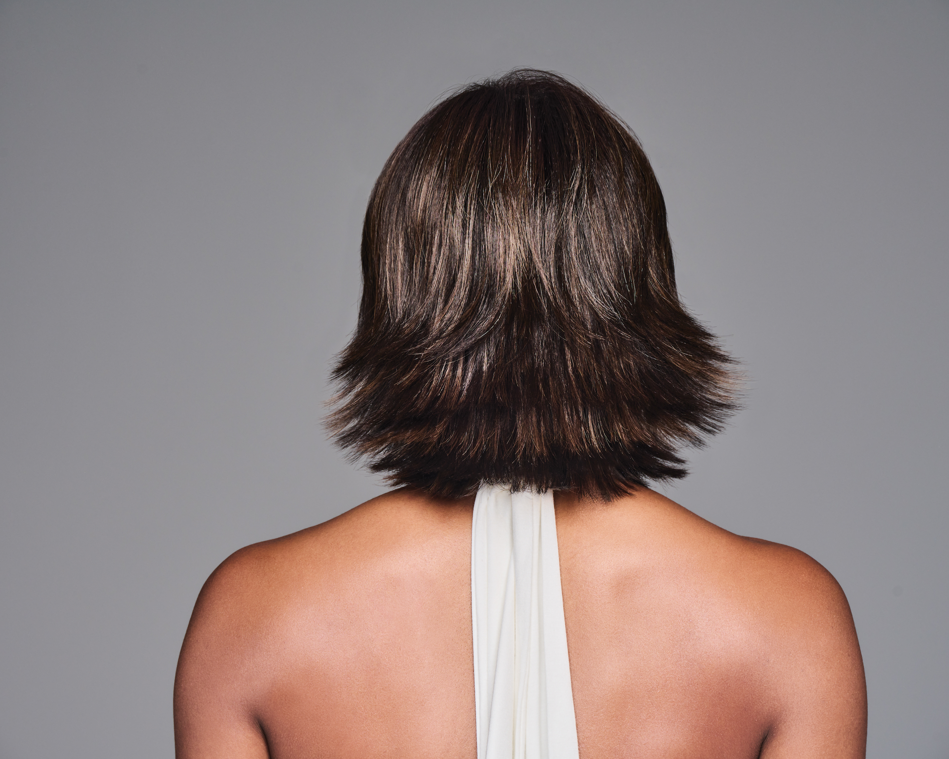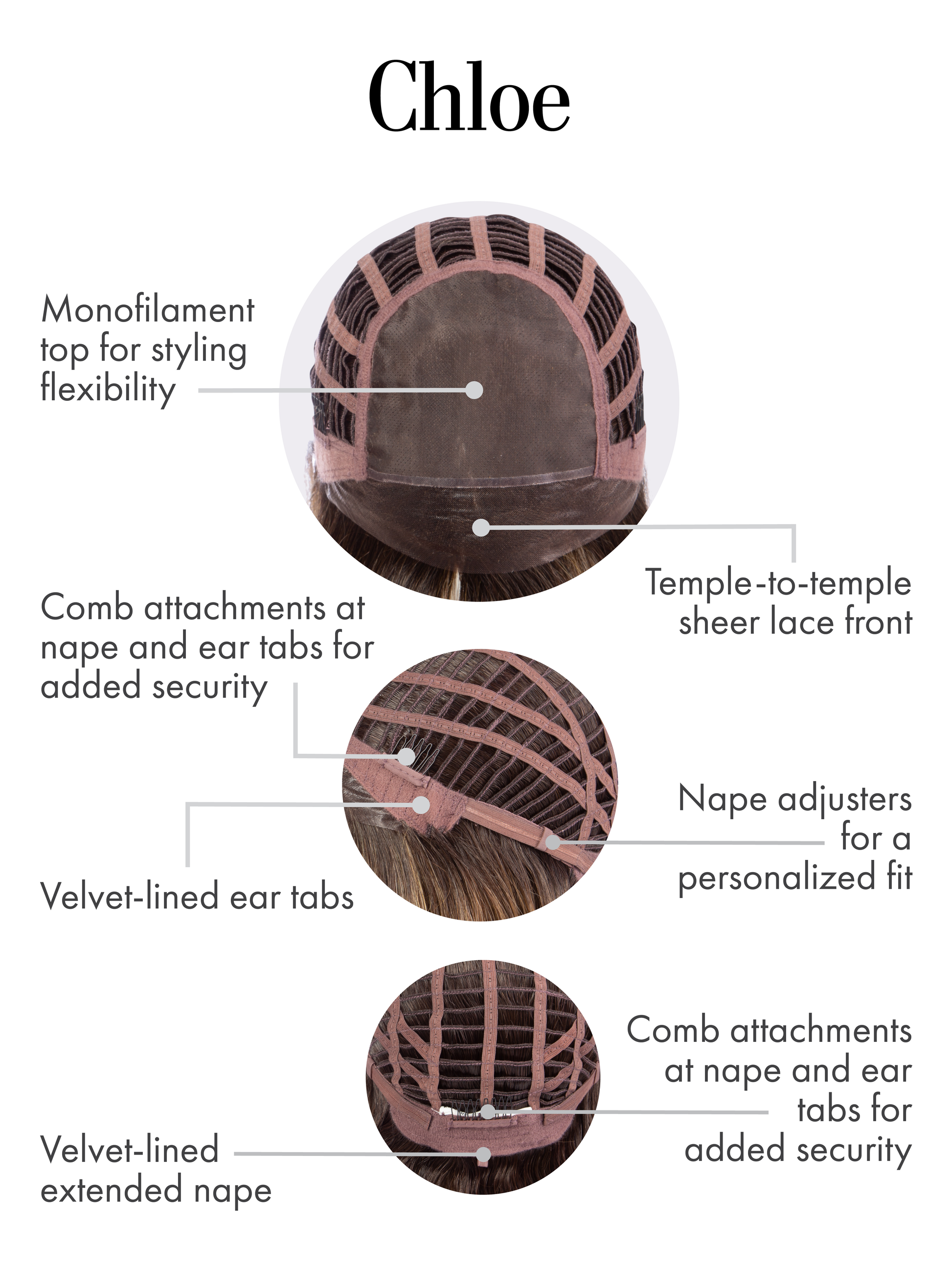 Every day is a great hair day when it begins with the beautiful CHLOE. She’s a smart, textured shaggy look with razor cut pieces throughout and a sultry eyelash bang. But the real news story is her full monofilament top that has natural movement and the ability to part where you like.