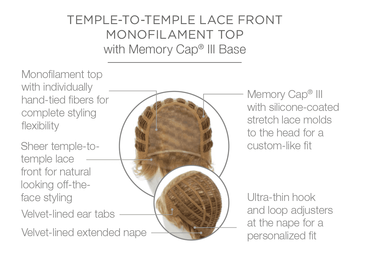 This is so everything-you-want: An ultra-precise cut. A length that’s just so. Sophisticated layering. Salon polish. And a look that’s so adaptable, you can take it from full and soft to textured and piecey, casual chic to full-out glam. Features a temple-to-temple lace front, monofilament top and Memory Cap® III base.