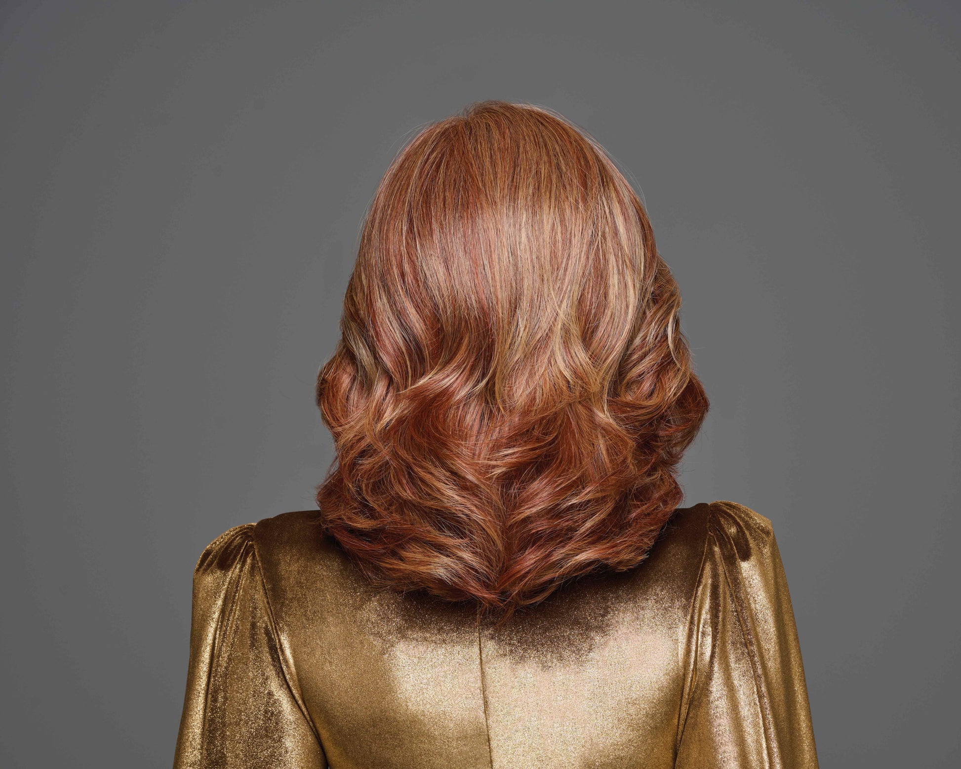 Today’s shoulder length butterfly cut sweeps away from the face and into a softly sculpted V-shaped feathering at the back. Our modern metamorphosis of this retro favorite has an eyelash bang, off-center parting and full monofilament top.