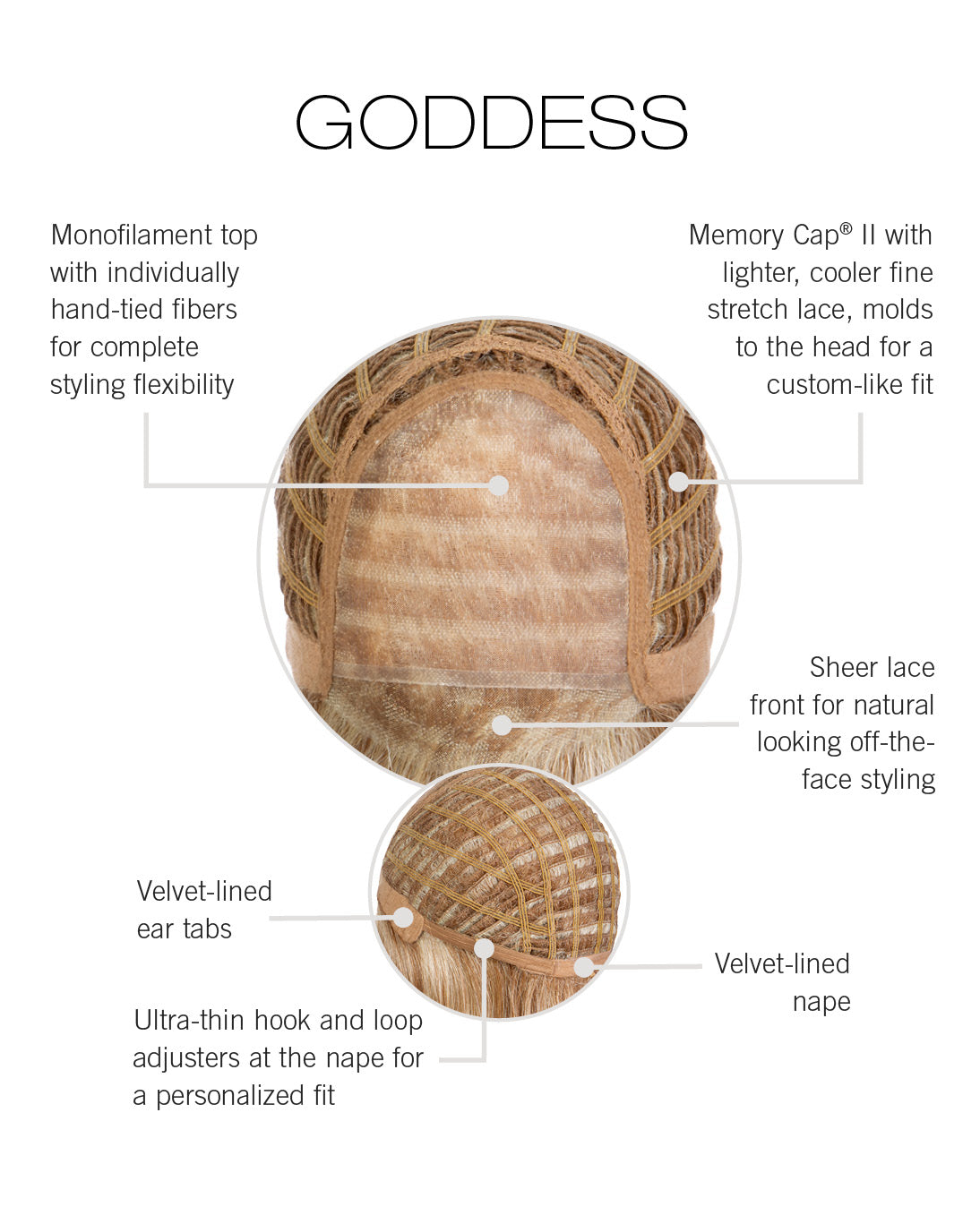 With a Sheer Indulgence™ lace front for the option of off-the-face styling and a monofilament top for varied parting choices, this barely waved, layered, shoulder length silhouette can also be curled for a more dramatic effect.