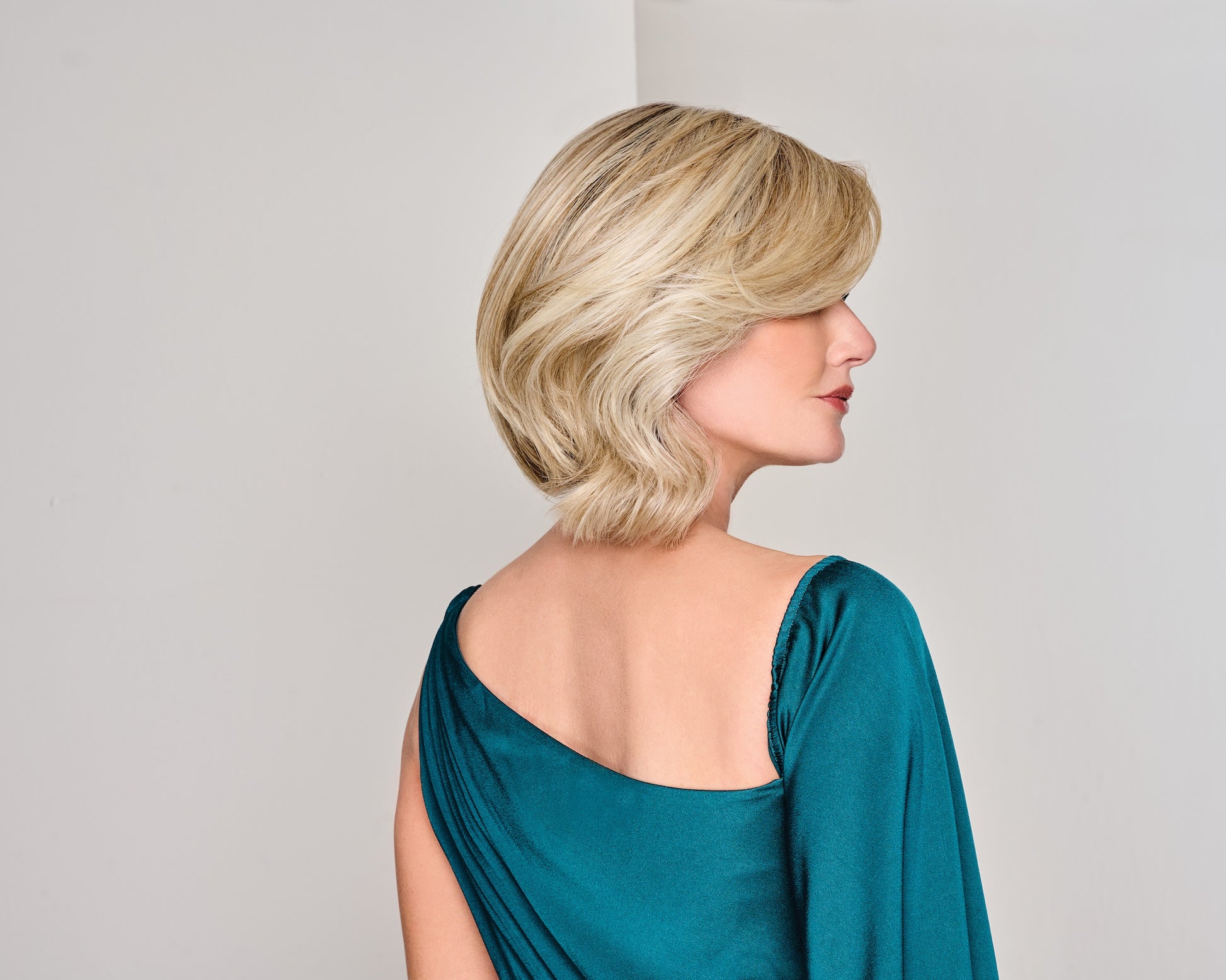 With trademark signature style, this easy-to-wear bob has the perfect combination of straight and waved textures for a tousled look that’s casual and fresh. A low-density top pairs with layered volume at the sides and a shorter, stacked back for movement that feels long, but doesn’t get in your way. The softly waved front can be worn swept to the side in a feathered fringe or gently gracing the jawline.
