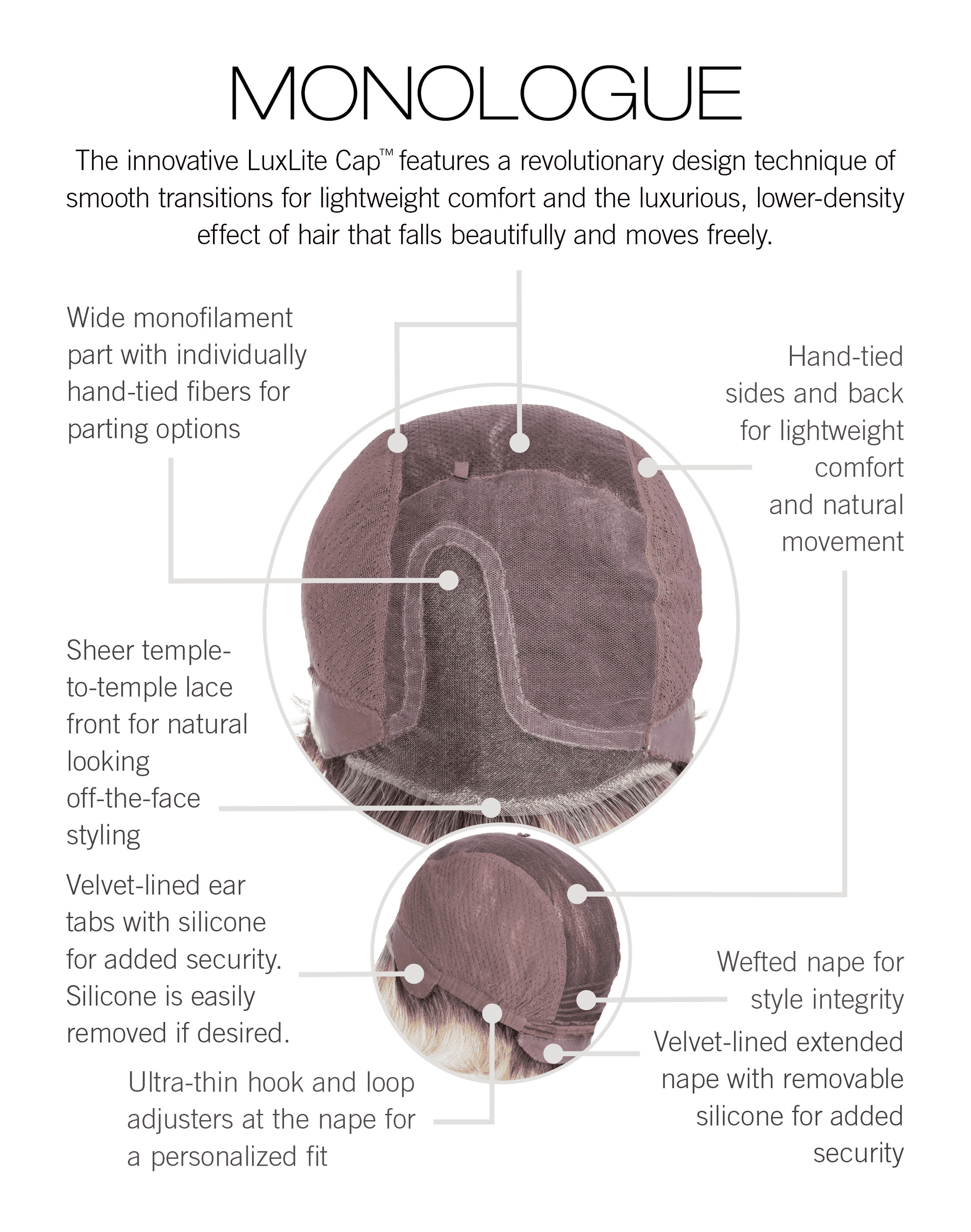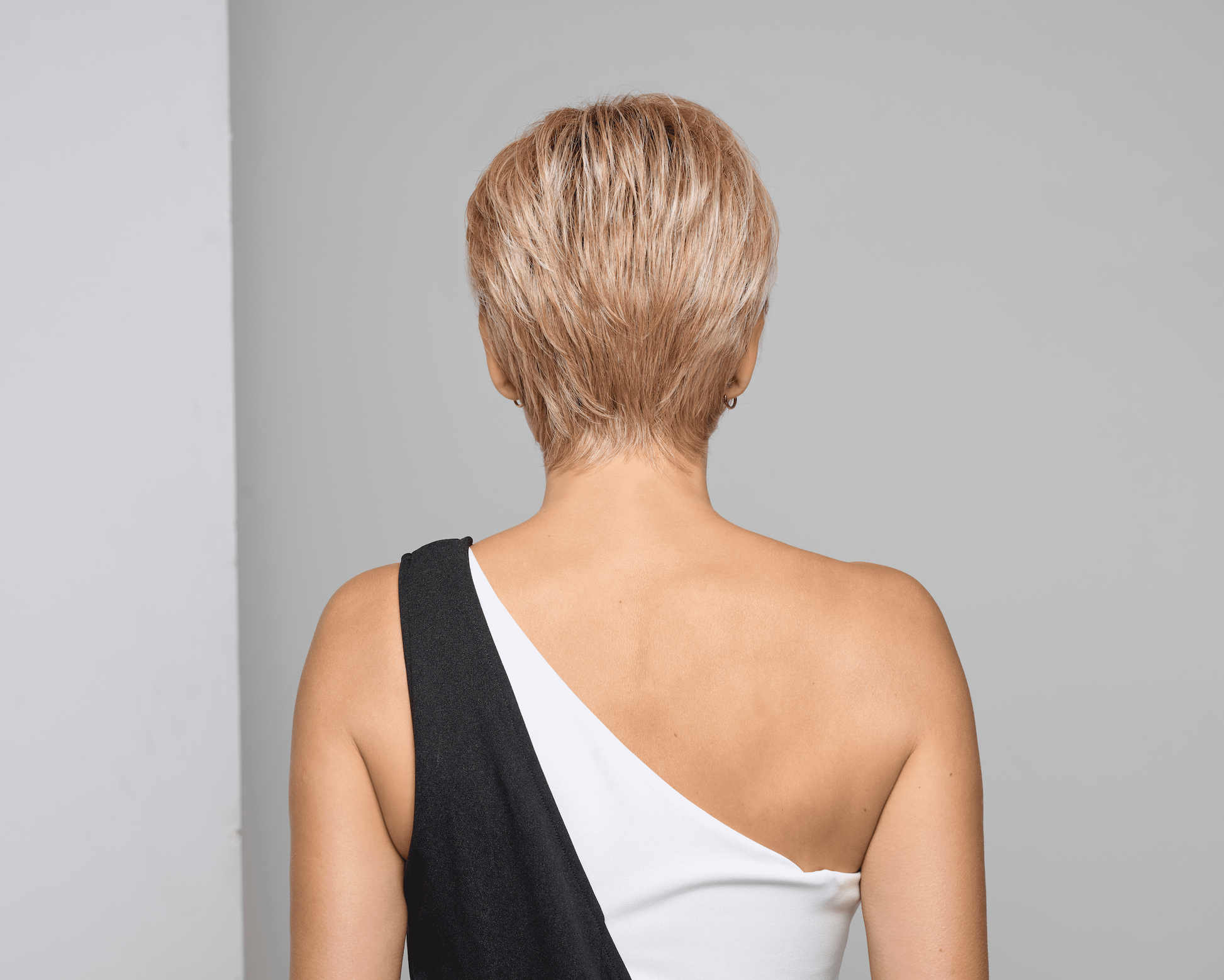 We’ve given a designer’s touch to this classic short crop of soft, razor cut layers, adding an asymmetrical fringe that looks flattering whether brushed away from the face or forward. The ultra-light cap is so comfortable, you’ll forget you’re wearing a wig at all.