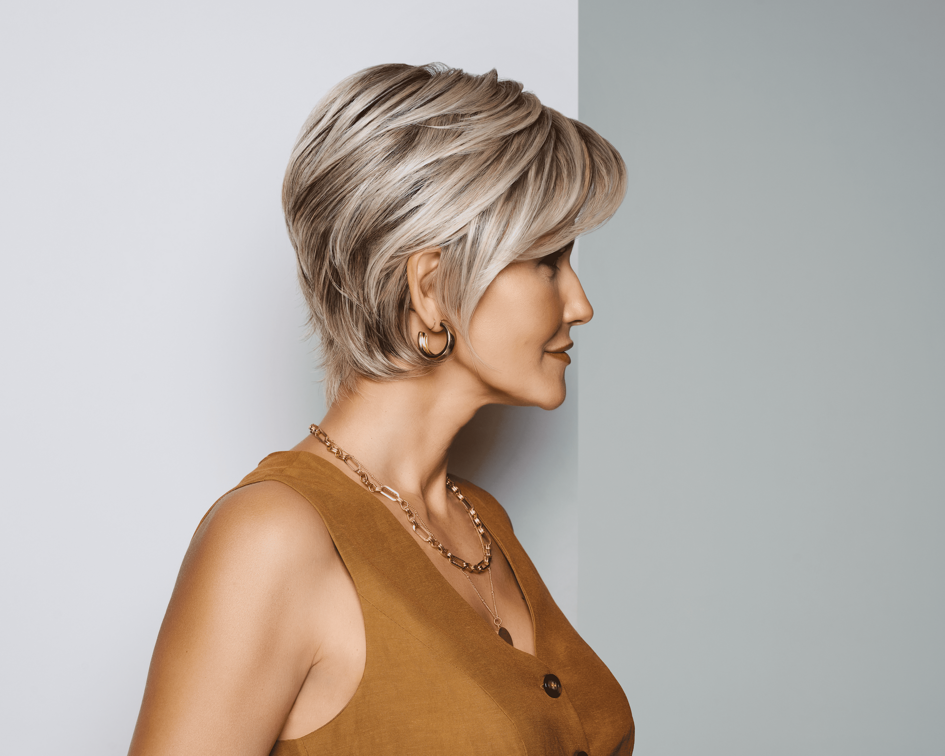 Smooth layering. Tapered sides. Volume at the crown. Face-framing bangs. A chic and polished vibe worthy of your next red-carpet moment.
