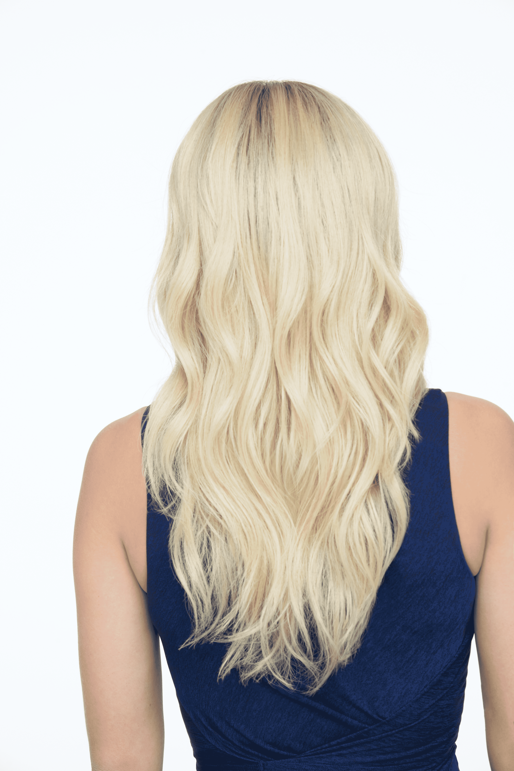 This long and softly tapered silhouette reflects the height of “undone glamour.” Soft waves at the crown and sides become slightly tighter at the ends. The overall effect is free-formed movement with a modern edge. Long layers throughout give the overall appearance of a one length cut and keep the style light with just the right amount of body.