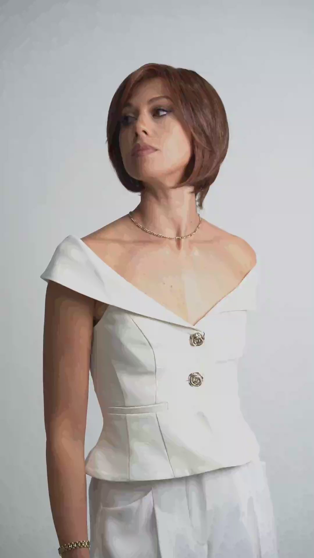Designed for clean lines and modern shape, this chic short bob features chin-length layers and sweeping bangs with a sleek, straight finish. Lightweight and easy to wear, it offers smooth movement and controlled volume for everyday comfort. Heat-resistant fibers allow versatile styling while preserving its refined silhouette.